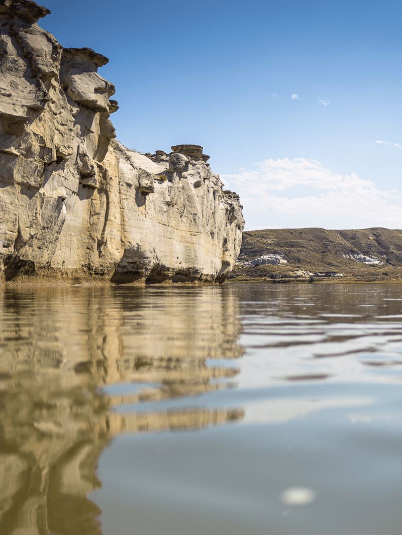 Described in the Lewis and Clark Journals as “scenes of visionary enchantment”. Through the “white cliffs” you will see Teppee rings, Corp of Discovery Campgrounds, petroglyphs, and towering layers of Eagle Sandstone and Shonkinite.