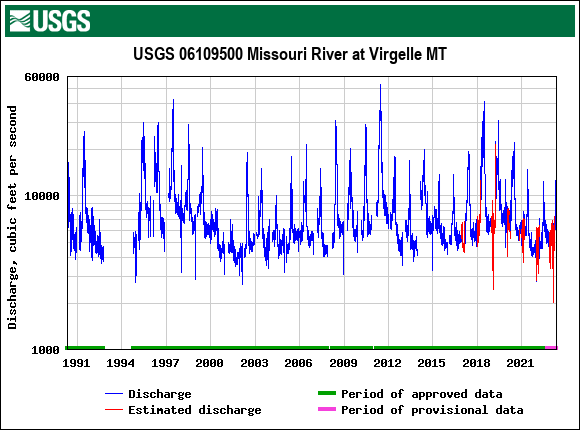 A quick view of Missouri River flows at Virgelle Ferry